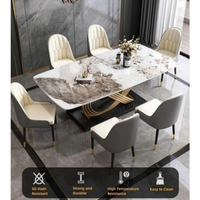 This dining table set combines luxury aesthetics with everyday practicality. Its premium materials, elegant design, and comfortable seating make it a perfect centerpiece for any dining space.