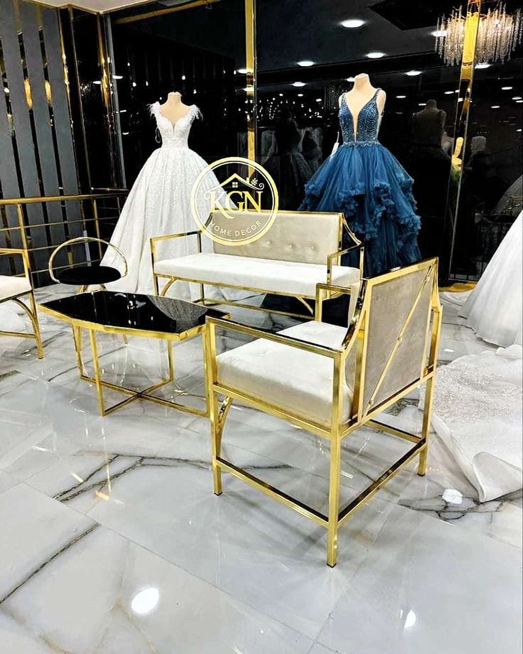 Ideal for showrooms, boutiques, bridal studios, hotel lobbies, waiting areas, and luxury homes, this sofa set serves as both a functional seating solution and a statement piece. Its clean lines, modern design, and premium materials make it a perfect choice for upscale interiors.